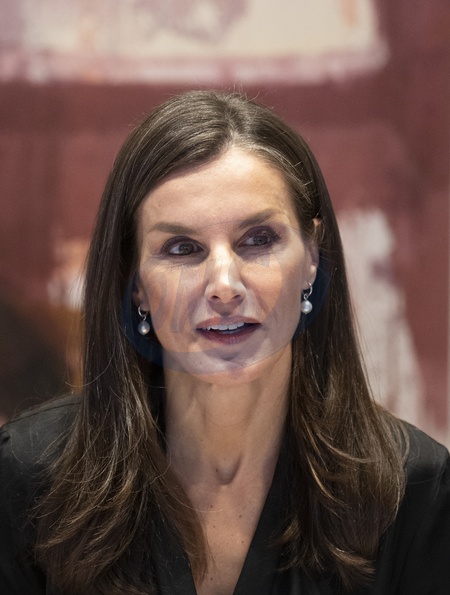 La reine Letizia d'Espagne, en tant que présidente d'honneur de FAD Youth, préside la réunion de son conseil d'administration à Madrid, le 12 décembre 2023. Queen Letizia attends a meeting with members of FAD Foundation against drugs at the Caixabank building in Madrid. December 12th, 2023.