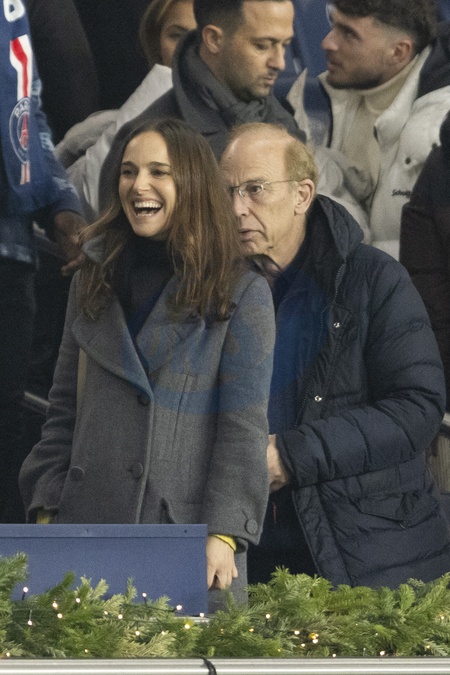 Natalie Portman et son père Avner Hershlag - Les célébrités assistent au match de football PSG - Nantes (2 - 1) au Parc des Princes à Paris, le 9 décembre 2023. © Cyril Moreau / Bestimage Celebrities attend the PSG - Nantes (2 - 1) football match at the Parc des Princes in Paris, December 9, 2023.