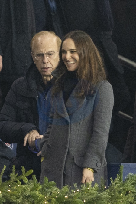 Natalie Portman et son père Avner Hershlag - Les célébrités assistent au match de football PSG - Nantes (2 - 1) au Parc des Princes à Paris, le 9 décembre 2023. © Cyril Moreau / Bestimage Celebrities attend the PSG - Nantes (2 - 1) football match at the Parc des Princes in Paris, December 9, 2023.
