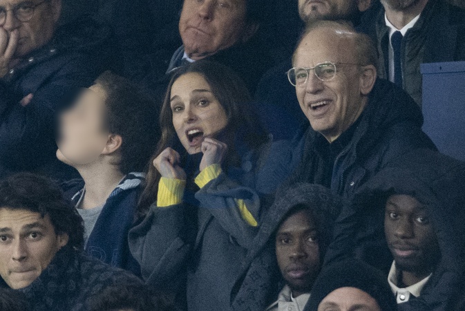 Natalie Portman son fils Aleph et son père Avner Hershlag - Les célébrités assistent au match de football PSG - Nantes (2 - 1) au Parc des Princes à Paris, le 9 décembre 2023. © Cyril Moreau / Bestimage Celebrities attend the PSG - Nantes (2 - 1) football match at the Parc des Princes in Paris, December 9, 2023.