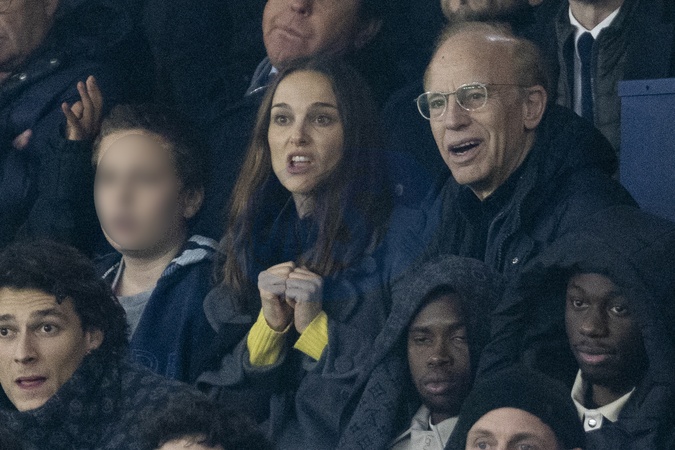 Natalie Portman son fils Aleph et son père Avner Hershlag - Les célébrités assistent au match de football PSG - Nantes (2 - 1) au Parc des Princes à Paris, le 9 décembre 2023. © Cyril Moreau / Bestimage Celebrities attend the PSG - Nantes (2 - 1) football match at the Parc des Princes in Paris, December 9, 2023.