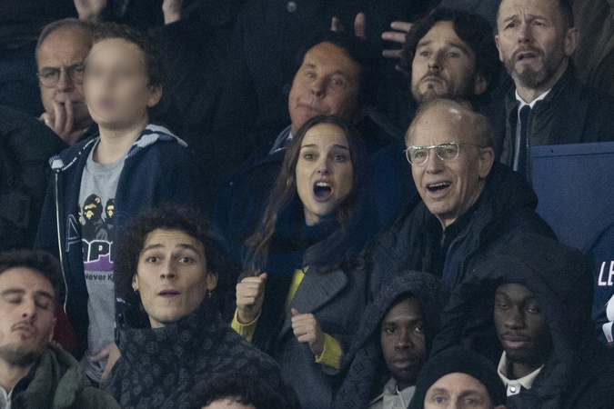 Natalie Portman son fils Aleph et son père Avner Hershlag - Les célébrités assistent au match de football PSG - Nantes (2 - 1) au Parc des Princes à Paris, le 9 décembre 2023. © Cyril Moreau / Bestimage Celebrities attend the PSG - Nantes (2 - 1) football match at the Parc des Princes in Paris, December 9, 2023.