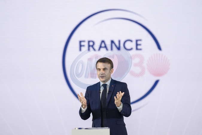 Le président Emmanuel Macron visite le site de Airbus à Toulouse à l'occasion des deux ans du plan d'investissement France 2030