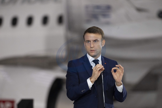 Le président Emmanuel Macron visite le site de Airbus à Toulouse à l'occasion des deux ans du plan d'investissement France 2030