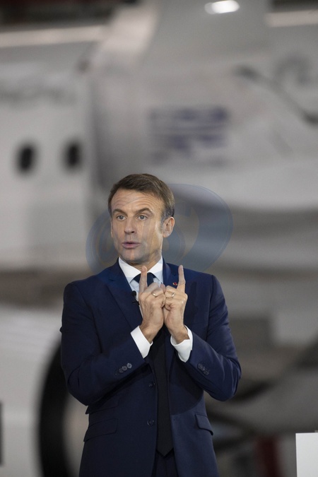 Le président Emmanuel Macron visite le site de Airbus à Toulouse à l'occasion des deux ans du plan d'investissement France 2030