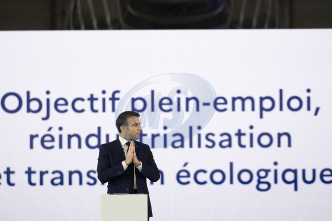 Le président Emmanuel Macron visite le site de Airbus à Toulouse à l'occasion des deux ans du plan d'investissement France 2030