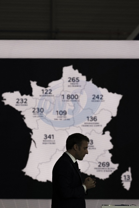 Le président Emmanuel Macron visite le site de Airbus à Toulouse à l'occasion des deux ans du plan d'investissement France 2030