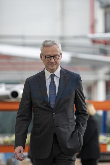 Le président Emmanuel Macron visite le site de Airbus à Toulouse à l'occasion des deux ans du plan d'investissement France 2030 le 11 décembre 2023. © Eliot Blondet / Pool / Bestimage French Economy Minister Bruno Le Maire during a french president visit to mark the two years of the France 2030 investment plan at the Airbus site in Toulouse, south-western France, on December 11, 2023.
