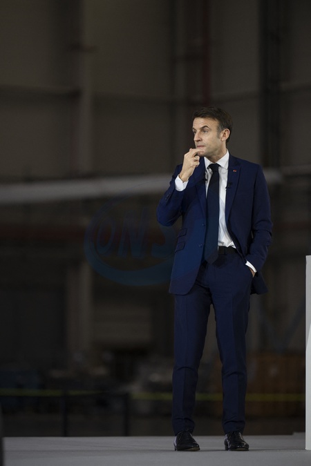 Le président Emmanuel Macron visite le site de Airbus à Toulouse à l'occasion des deux ans du plan d'investissement France 2030