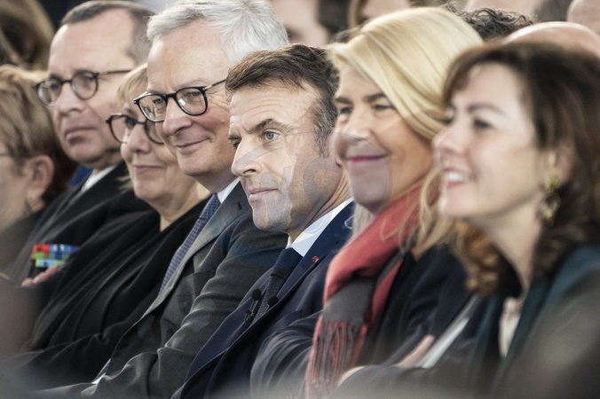 Le président Emmanuel Macron visite le site de Airbus à Toulouse à l'occasion des deux ans du plan d'investissement France 2030 le 11 décembre 2023. © Eliot Blondet / Pool / Bestimage French President Emmanuel Macron gestures as he addresses a speech during a visit to mark the two years of the France 2030 investment plan at the Airbus site in Toulouse, south-western France, on December 11, 2023.