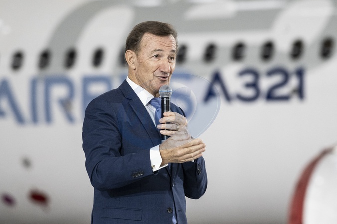 Le président Emmanuel Macron visite le site de Airbus à Toulouse à l'occasion des deux ans du plan d'investissement France 2030