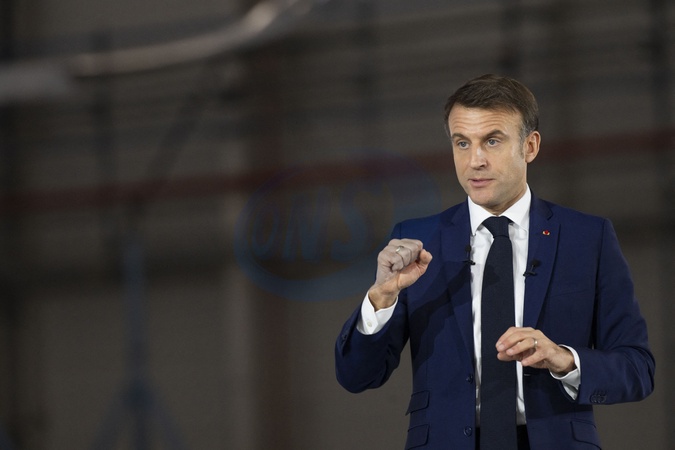 Le président Emmanuel Macron visite le site de Airbus à Toulouse à l'occasion des deux ans du plan d'investissement France 2030 le 11 décembre 2023. © Eliot Blondet / Pool / Bestimage French President Emmanuel Macron gestures as he addresses a speech during a visit to mark the two years of the France 2030 investment plan at the Airbus site in Toulouse, south-western France, on December 11, 2023.
