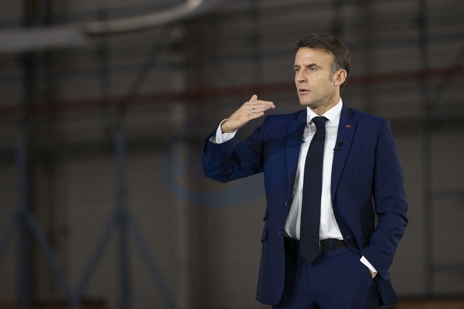 Le président Emmanuel Macron visite le site de Airbus à Toulouse à l'occasion des deux ans du plan d'investissement France 2030 le 11 décembre 2023. © Eliot Blondet / Pool / Bestimage French President Emmanuel Macron gestures as he addresses a speech during a visit to mark the two years of the France 2030 investment plan at the Airbus site in Toulouse, south-western France, on December 11, 2023.