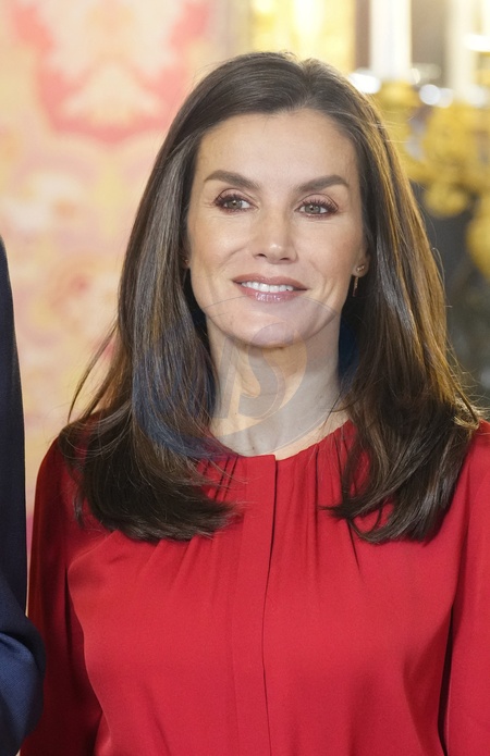 Le roi Felipe VI et la reine Letizia d'Espagne lors de la réunion du conseil d'administration de la Fondation Princesse de Gérone, au Palais Royal à Madrid, le 13 décembre 2023. Le roi Felipe préside la réunion du Conseil d'administration de la Fondation Princesse de Gérone, dont il est président d'honneur depuis sa création en 2009. L'objectif principal de la Fondation est d'œuvrer pour les jeunes dans tous les aspects essentiels à leur avenir et à leur carrière professionnelle. développement. King Felipe VI (2l) and Queen Letizia (c) on their arrival at the meeting of the Board of Trustees of the Princess of Girona Foundation, at the Royal Palace, December 13, 2023, in Madrid, Spain. King Felipe presides over the meeting of the Board of Trustees of the Princess of Girona Foundation, of which he has been Honorary President since its creation in 2009. The Foundation's main objective is to work for young people in all aspects critical to their future and professional development.