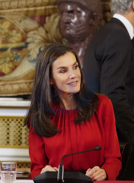 Król Felipe VI i królowa Letizia podczas spotkania zarządu Fundacji Księżnej Girony w Pałacu Królewskim w Madrycie
