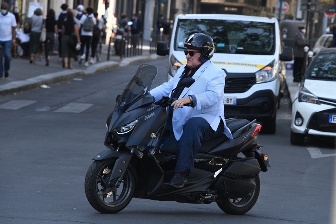 Info - Gérard Depardieu, un documentaire accuse et dérange - Exclusif - Prix spécial - No web - Gérard Depardieu déjeune avec une amie dans un restaurant japonais de Saint-Germain-des-Prés à Paris le 18 septembre 2020. Il est reparti sur son scooter. En 2014, Gérard Depardieu a réussi à échapper à la suspension de six mois de son permis de conduire français en l'échangeant contre un permis de conduire belge que les autorités françaises n'ont pas le droit de lui retirer. Exclusif - Prix spécial - No web
