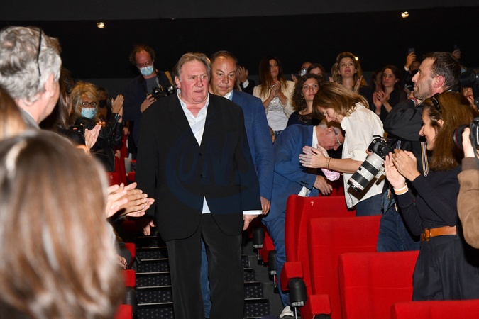 Info - Gérard Depardieu, un documentaire accuse et dérange - Gérard Depardieu lors de la soirée de clôture de la 3eme édition du Festival Cinéroman à Nice, le 24 octobre 2021. C'est avec la remise des prix et la projection en avant première du film Goliath, réalisé par F.Tellier, que Cinéroman s'est achevé avec en invité surprise, G.Depardieu. 9 films tirés de roman ont été présentés en compétition et le Jury, présidé cette année par N.Bedos, a recompensé pour le prix du meilleur film adapté d'un roman : F.Zeller pour The Father, pour Le prix d'interprétation féminine : G.Londez pour The Father, dans Le Discours de Laurent Tirard et Benedetta de Paul Verhoeven, pour le prix d'interprétation masculine : B.Lavernhe pour Le Discours de Laurent Tirard, pour le prix coup de coeur du festival à une personnalité du cinéma pour sa relation très forte avec la ville de Nice et la côte d'Azur : M.Boujenah, et pour finir, le prix spécial du jury a été décerné à G.Depardieu pour avoir remis dans la lumière des oeuvres littéraires et su incarner des personnages de papier auxquels personne n'aurait osé prêter sa voix et son regard. Maigret, Germinal, Les Misérables, Monte Cristo, Les Valseuses, Sous le soleil de Satan, Les Illusions Perdues, Des Hommes, L'homme au masque de fer... &x2028; © Bruno Bebert / Bestimage Closing ceremony of Cineroman Festival. Nice. October 24th, 2021.