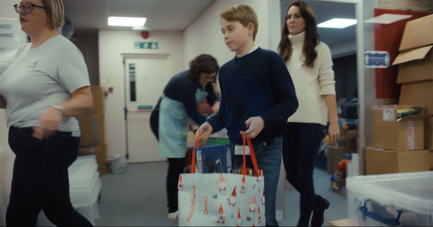 Catherine (Kate) Middleton, princesse de Galles, et ses enfants aident à préparer des sacs-cadeaux de Noël pour des familles au seuil de la pauvreté
