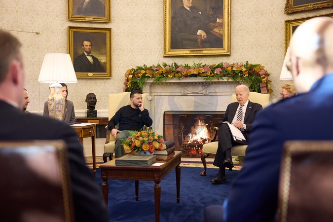 Le président ukrainien Volodymyr Zelensky a entamé une réunion avec le président américain Joe Biden à Washington, le 12 décembre 2023. "Je suis vraiment heureux d'être ici à la Maison Blanche aujourd'hui pour partager des messages très importants. Je suis reconnaissant pour l'invitation. Je voudrais remercier l'Amérique et nos partenaires pour leur soutien", a déclaré Volodymyr Zelensky avant la rencontre avec le président des États-Unis à la Maison Blanche. Il a également souligné qu'aujourd'hui était un jour spécial pour l'Ukraine, la Journée des forces terrestres, au cours de laquelle près de 600 000 Ukrainiens très courageux servent, prouvant chaque jour qu'ils sont capables de gagner. President of Ukraine Volodymyr Zelenskyy began a meeting with U.S. President Joseph Biden. "I'm really glad to be here at the White House today to share some very important messages. I am grateful for the invitation. I'd like to thank America and our partners for their support,” Volodymyr Zelenskyy said before the meeting with the President of the United States at the White House. He also noted that today is a special day for Ukraine, the Day of the Ground Forces, in which almost 600,000 very brave Ukrainians serve, proving every day that they are capable of winning. December 12th, 2023.