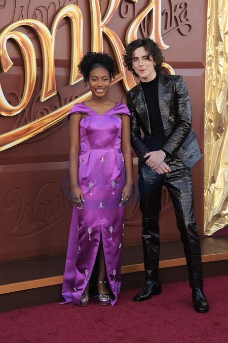 Calah Lane and Timothee Chalamet at the Los Angeles premiere of 'Wonka' held at the Regency Village Theater in Westwood, USA on December 10, 2023., Credit:Lumeimages.com / Avalon