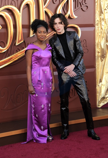 Calah Lane and Timothee Chalamet at the Los Angeles premiere of 'Wonka' held at the Regency Village Theater in Westwood, USA on December 10, 2023., Credit:Lumeimages.com / Avalon