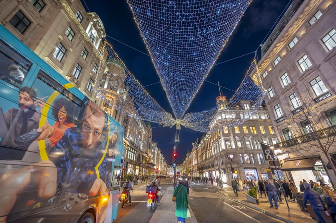 London, UK. 11th Dec, 2023. A bustling pre-christmas evening in central London with thousands viewing the impressive Christmas decorations in Westminster. Lights in Regent Street, Credit:MALCOLM PARK / Avalon