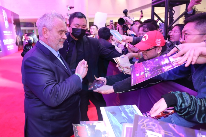 Luc Besson, French director, signs his names for his fans at the Chinese premiere of his movie Dog Man in Shanghai, China Sunday, Dec. 10, 2023., Credit:YUYU CHEN / Avalon