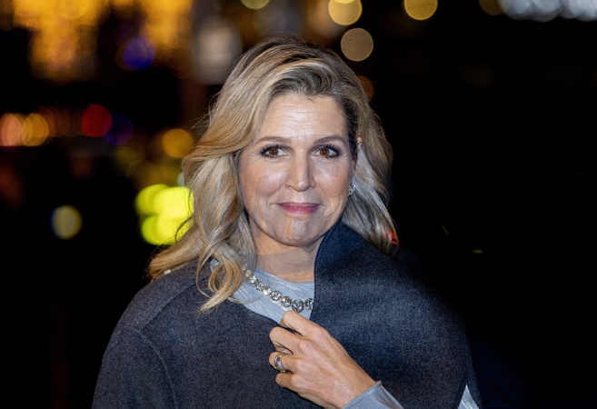 Królowa Maxima i król Holandii Willem-Aleksander po przybyciu do Pałacu Królewskiego w Amsterdamie w towarzystwie prezydenta Korei Południowej Yoon Suk Yeol