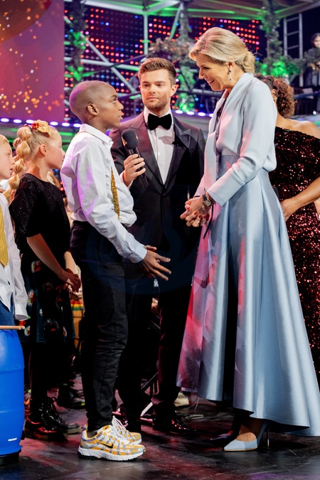 La reine Maxima des Pays-Bas lors de l'enregistrement du Gala musical de Noël 2023 au Spant à Bussum, le 14 décembre 2023. Queen Maxima at the Christmas Music Gala. Bussum. December 14th, 2023.