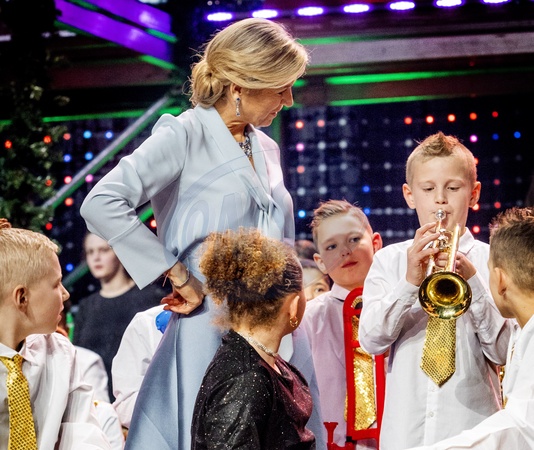 La reine Maxima des Pays-Bas lors de l'enregistrement du Gala musical de Noël 2023 au Spant à Bussum, le 14 décembre 2023. Queen Maxima at the Christmas Music Gala. Bussum. December 14th, 2023.