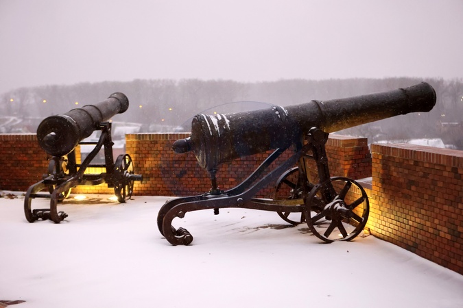 CHERNIHIV, UKRAINE - NOVEMBER 23, 2023 - Canons are on display at the Ancient Chernihiv National Architectural and Historical Sanctuary, Chernihiv, northern Ukraine., Credit:Yurii Rylchuk / Avalon