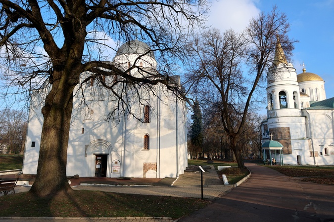 CHERNIHIV, UKRAINE - NOVEMBER 23, 2023 - Boris and Gleb Cathedral (L) is part of the Ancient Chernihiv National Architectural and Historical Sanctuary, Chernihiv, northern Ukraine., Credit:Yurii Rylchuk / Avalon