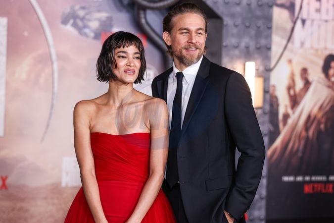 HOLLYWOOD, LOS ANGELES, CALIFORNIA, USA - DECEMBER 13: Algerian actress, dancer and model Sofia Boutella and British actor and screenwriter Charlie Hunnam arrive at the Los Angeles Premiere Of Netflix's 'Rebel Moon - Part One: A Child Of Fire' held at the TCL Chinese Theatre IMAX on December 13, 2023 in Hollywood, Los Angeles, California, United States., Credit:Xavier Collin / Avalon