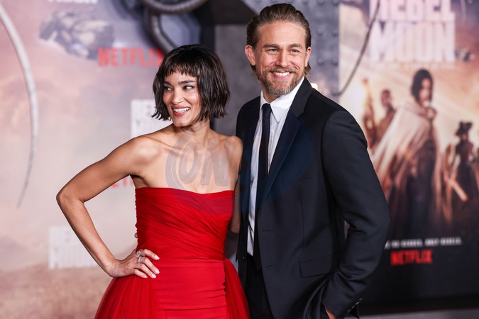 HOLLYWOOD, LOS ANGELES, CALIFORNIA, USA - DECEMBER 13: Algerian actress, dancer and model Sofia Boutella and British actor and screenwriter Charlie Hunnam arrive at the Los Angeles Premiere Of Netflix's 'Rebel Moon - Part One: A Child Of Fire' held at the TCL Chinese Theatre IMAX on December 13, 2023 in Hollywood, Los Angeles, California, United States., Credit:Xavier Collin / Avalon