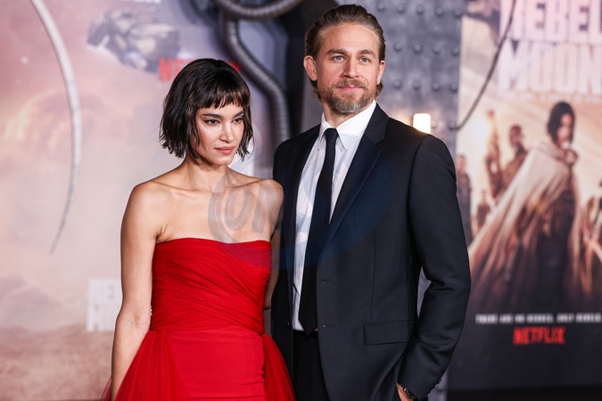 HOLLYWOOD, LOS ANGELES, CALIFORNIA, USA - DECEMBER 13: Algerian actress, dancer and model Sofia Boutella and British actor and screenwriter Charlie Hunnam arrive at the Los Angeles Premiere Of Netflix's 'Rebel Moon - Part One: A Child Of Fire' held at the TCL Chinese Theatre IMAX on December 13, 2023 in Hollywood, Los Angeles, California, United States., Credit:Xavier Collin / Avalon