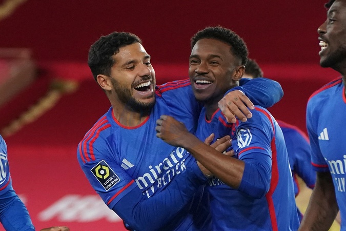 Joie Jeffinho (Lyon) - Clinton Mata (Lyon) - Damien Da Silva (Lyon) - Tino Kadewere (Lyon) - FOOTBALL - AS Monaco Vs Lyon (Olympique Lyonnais) (0-1) , Ligue 1 Uber Eats à Monaco le 15 décembre 2023. © Norbert Scanella / Panoramic / Bestimage Soccer - Monaco Vs Lyon (0-1) in Monaco on 15/12/2023