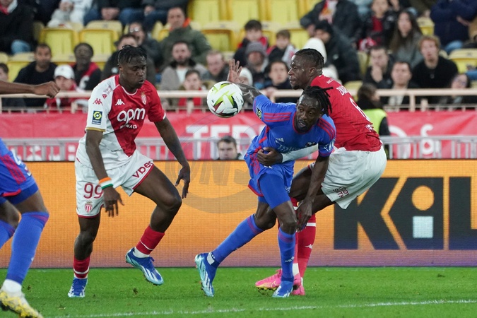 Tino Kadewere (Lyon) - Denis Zakaria (AS Monaco) - FOOTBALL - AS Monaco Vs Lyon (Olympique Lyonnais) (0-1) , Ligue 1 Uber Eats à Monaco le 15 décembre 2023. © Norbert Scanella / Panoramic / Bestimage Soccer - Monaco Vs Lyon (0-1) in Monaco on 15/12/2023