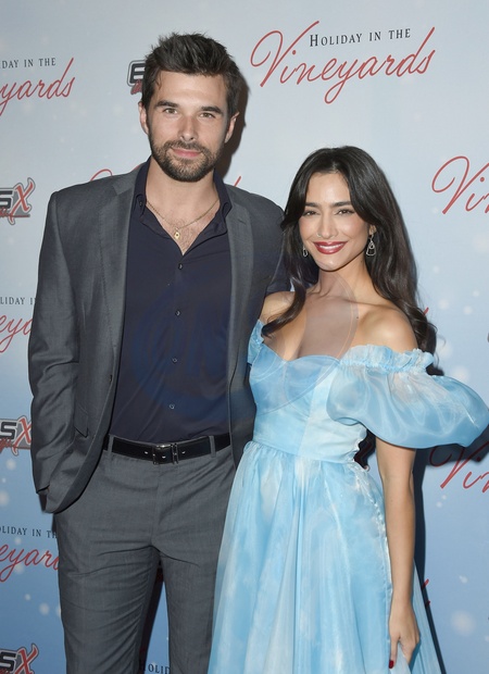 Josh Swickard, Sol Rodriguez attends the Holidays in the Vineyards Premiere at SJR Theatre in Burbank, California on December 12, 2023, Credit:Avalon