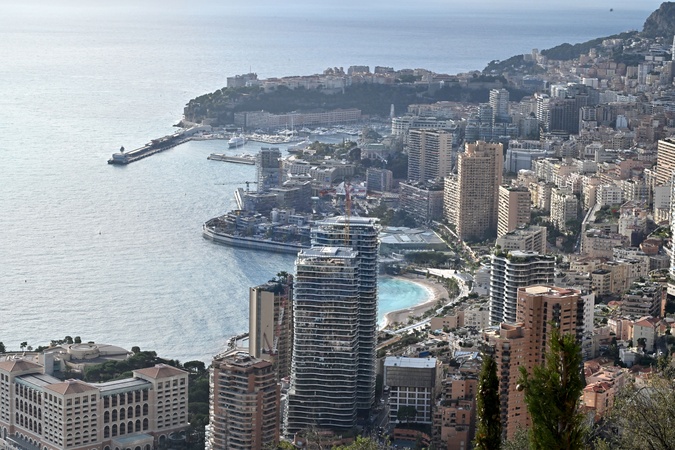 Widok na plac budowy infrastruktury morskiej pod przyszłą rozbudowę, znaną jako Anse du Portier, w Monako