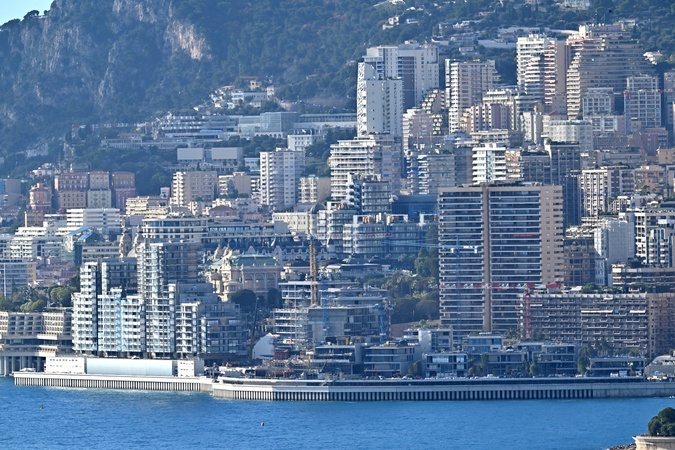 Widok na plac budowy infrastruktury morskiej pod przyszłą rozbudowę, znaną jako Anse du Portier, w Monako