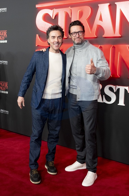 Shawn Levy and Hugh Jackman attends the "Stranger Things: The First Shadow" World Premiere at the Phoenix Theatre London December 14, 2023, Credit:celebrityphotos uk / Avalon