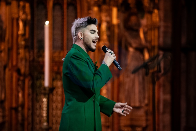 Adam Lambert performs during the Royal Carols - Together At Christmas service at Westminster Abbey in London., Credit:Aaron Chown / Avalon