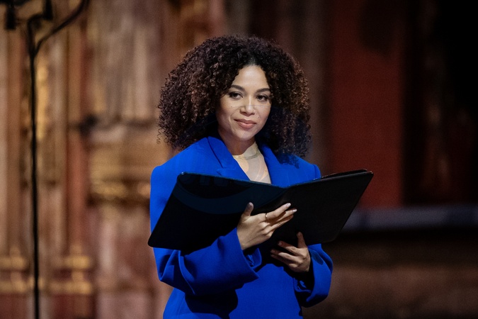 Leonie Elliott gives a reading during the Royal Carols - Together At Christmas service at Westminster Abbey in London., Credit:Aaron Chown / Avalon