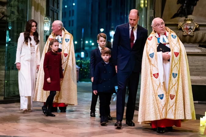 (left to right) The Princess of Wales, the Reverend David Stanton, Princess Charlotte, Prince George, Prince Louis, the Prince of Wales and the Dean of Westminster Abbey, the Very Reverend Dr David Hoyle, during the Royal Carols - Together At Christmas service at Westminster Abbey in London., Credit:Aaron Chown / Avalon