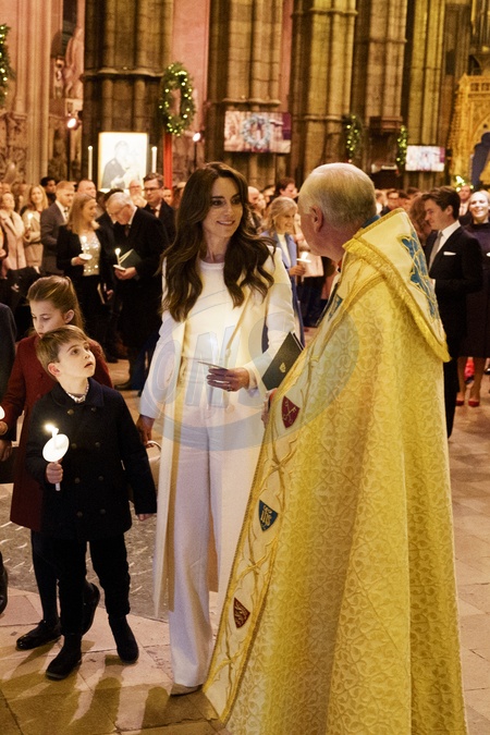 (left to right) Princess Charlotte, Prince Louis, the Princess of Wales and the Reverend David Stanton during the Royal Carols - Together At Christmas service at Westminster Abbey in London., Credit:Jordan Pettitt / Avalon