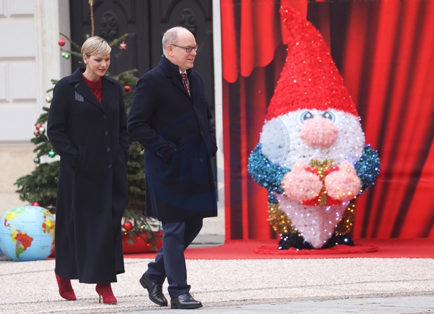 Książę Monako Albert II i księżna Charlene z Monako podczas dostarczania prezentów bożonarodzeniowych w Pałacu Monako