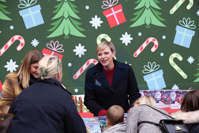 No Tabloïds - La princesse Charlène de Monaco - Remise de cadeaux de Noël aux enfants de la principauté dans la cour d'honneur du palais de Monaco, le 20 décembre 2023. © JC Vinaj / Pool / Bestimage No Tabloïds - Presentation of Christmas gifts to the children of the principality in the main courtyard of the Palace of Monaco, December 20, 2023.