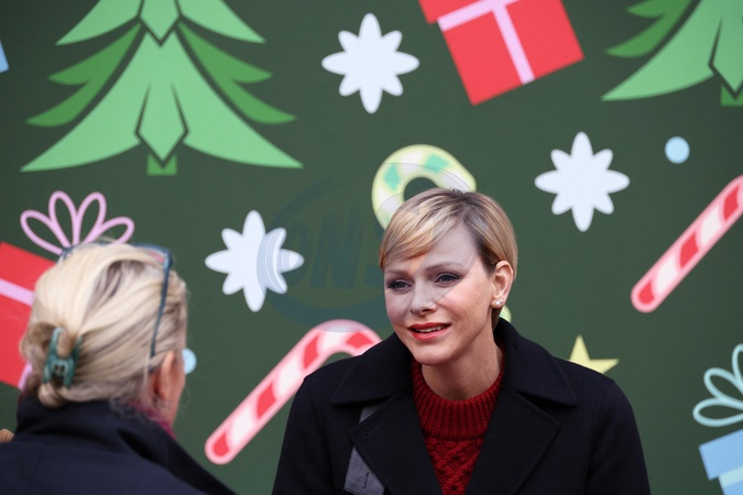 No Tabloïds - La princesse Charlène de Monaco - Remise de cadeaux de Noël aux enfants de la principauté dans la cour d'honneur du palais de Monaco, le 20 décembre 2023. © JC Vinaj / Pool / Bestimage No Tabloïds - Presentation of Christmas gifts to the children of the principality in the main courtyard of the Palace of Monaco, December 20, 2023.