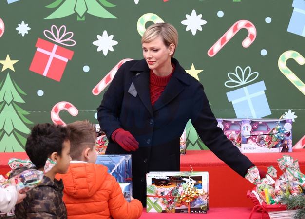 No Tabloïds - La princesse Charlène de Monaco - Remise de cadeaux de Noël aux enfants de la principauté dans la cour d'honneur du palais de Monaco, le 20 décembre 2023. © JC Vinaj / Pool / Bestimage No Tabloïds - Presentation of Christmas gifts to the children of the principality in the main courtyard of the Palace of Monaco, December 20, 2023.