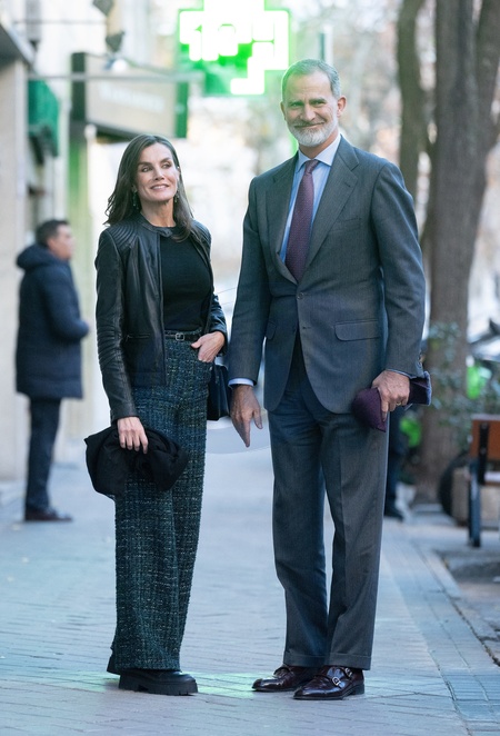 Le roi Felipe VI, la reine Letizia - La famille royale d'Espagne à la sortie du restaurant Pa-Bu à Madrid, à l'occasion du 60ème anniversaire de la princesse Elena d'Espagne. Le 20 décembre 2023 Spanish Royals celebrate princess Elena 60th birthday with a family lunch at the Pa-Bu Restaurant . Madrid - December 20, 2023